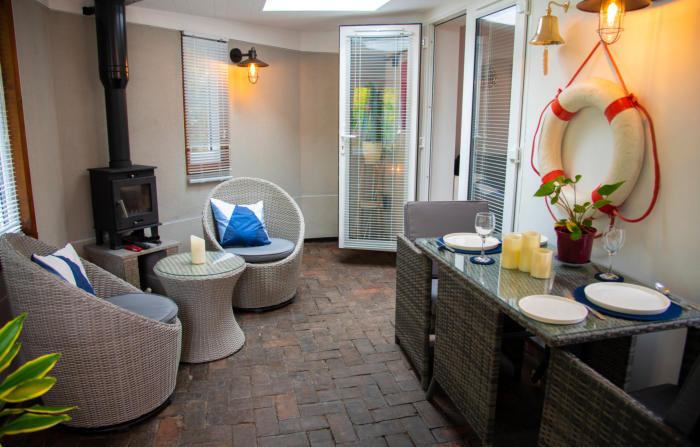 Provides additional dining area with casual seating and a log burner for those cooler evenings.